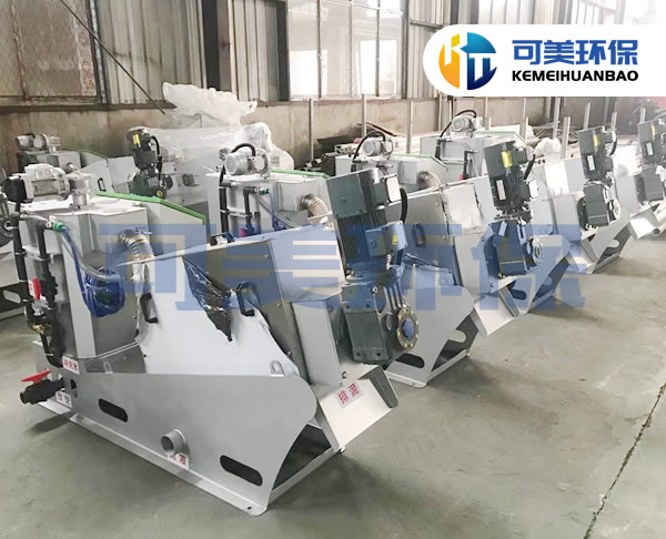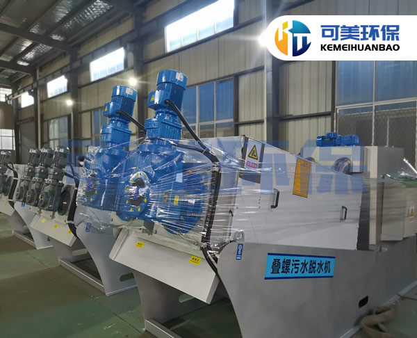 可美環(huán)保研制的疊螺式污泥脫水機主要由機架、螺旋軸、動環(huán)、靜環(huán)、隔環(huán)、雙頭螺栓、絮凝攪拌機、電氣控制箱等組成。