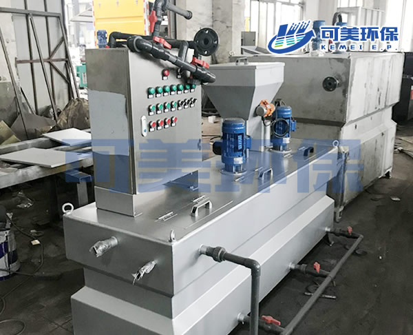 自動溶解和投加裝置由PLC自動控制系統(tǒng)、干粉儲料系統(tǒng)、干粉精、確投加裝置、防潮濕加熱器、不銹鋼攪拌裝置組成。
